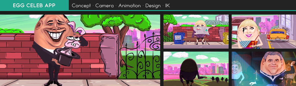 An international company created a silly mobile app for customizing and accessorizing celebrities that dangerously resemble humpty dumpty. Then they found me and wanted to create a fun/hip music video cartoon to help market it throughout the internet. Wahlah.