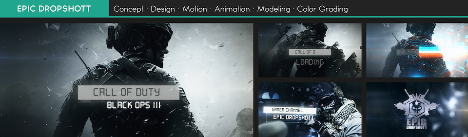 I was given full creative control on this show open. My goal was to appeal to other Call Of Duty: Black Ops players but also keep it short enough to not be annoying and also to brand it will with the Epic Dropshott logo which I also designed.